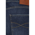Cotton Jeans by Brunello Cucinelli, five-pocket straight style, front button closure, belt loops waistband, iconic leather patch with brand signature pressure-printed applique on back.