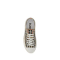 Cotton TNR Jack Low Sneakers by Burberry, rubber reinforced round toe, front lace-up closure, iconic all-over repeated brand pattern, embossed brand monogram on heel.