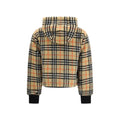 The cropped hooded Check fleece Jacket by Burberry is crafted from a soft cashmere and wool blend knit, featuring the house’s signature Burberry Check in archive beige. Designed with a cropped cut and regular fit, it includes a breathable mesh lining for enhanced comfort. Functional details such as the two-way zip closure, side zip pockets, and drawstrings at the hem and hood meet heritage touches like the silicone Equestrian Knight Design patch at the chest — a nod to an archival emblem from the 1980s.
