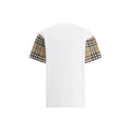 Burberry’s Cotton Check Archive Sleeve T-shirt is a garment that combines comfort with distinctive style. Featuring a ribbed collar, this T-shirt features sleeves embellished with the iconic Archivio Check pattern, one of the brand’s historic motifs. The simple, clean design of the T-shirt body highlights the sleeves with the famous pattern, creating a stylish and recognizable contrast.
