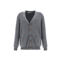 Cotton Cardigan by Golden Goose, featuring front button closure, ribbed cuffs, v-neck with ribbed trim, ribbed hem, two side patch pockets, monogram lettering applique on back, regular fit.