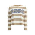 Max Mara’s Viterbo Sweater is made of pure virgin wool and features a brown and white striped pattern, enhanced by “1951” flocked embroidery on the front. An iconic garment with an essential design, perfect for creating sophisticated and comfortable looks during the cold season.