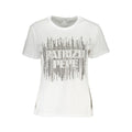 Elevate your everyday ensemble with the chic allure of Patrizia Pepe. This crisp white t-shirt with its short sleeves and classic crew neck exudes effortless elegance. The contrast details and signature logo add a distinctive edge that sets you apart. Crafted from pure cotton, it promises both style and comfort. Ideal for the fashion-forward individual who commands attention without saying a word.