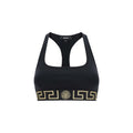 Cotton Underwear Top by Versace, elasticized bust lap with iconic all-over repeated brand motif, close fit.